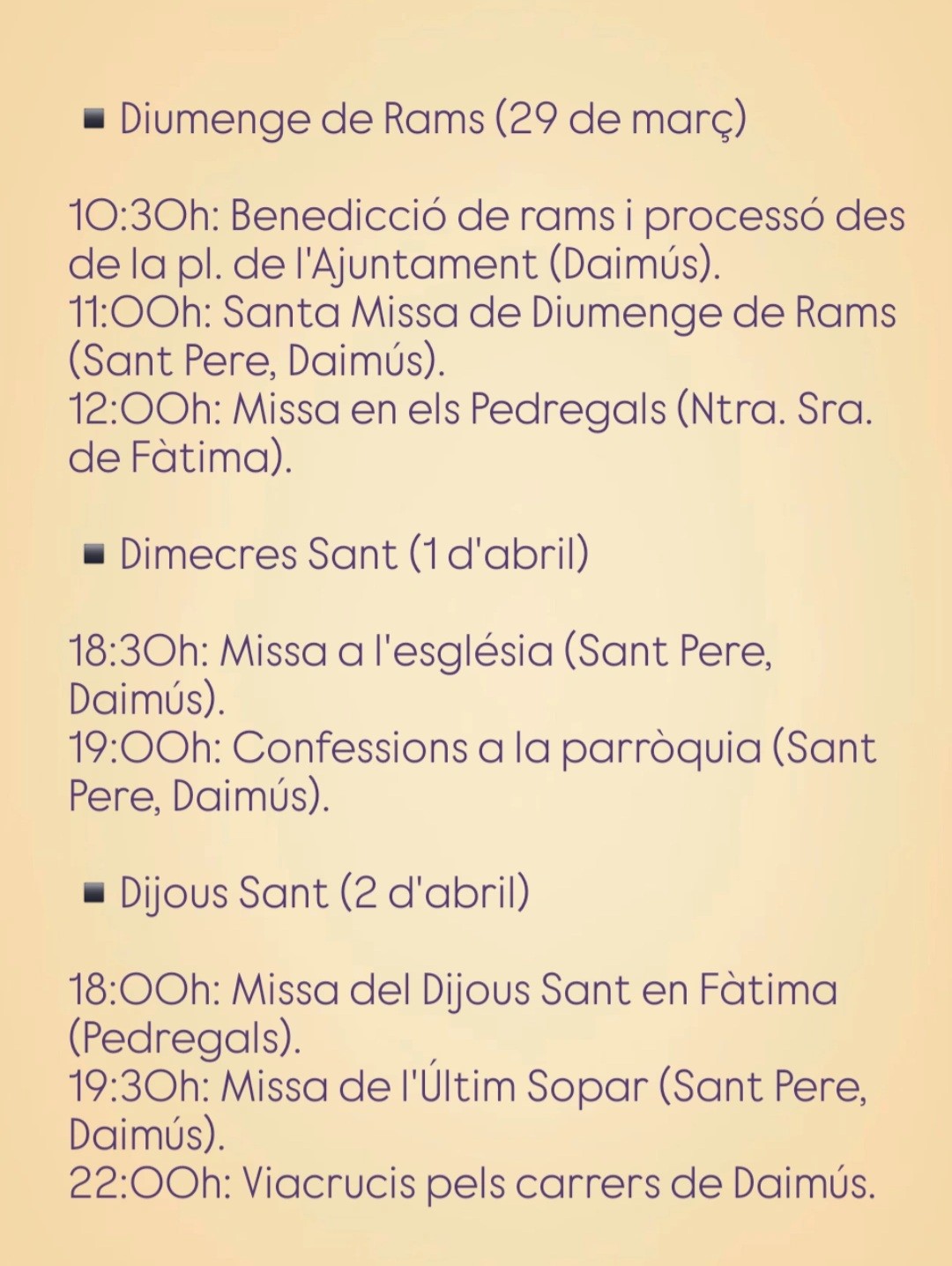 Daimús presenta el horario de actos de Semana Santa 2026 en sus parroquias