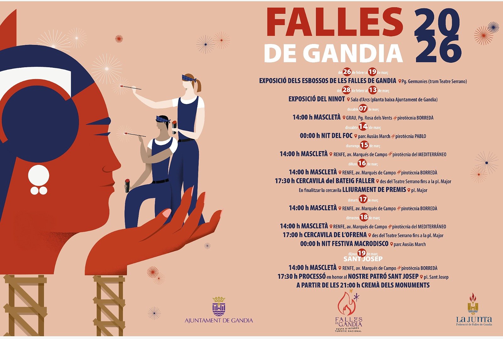 Gandia celebra las Fallas 2026 con mascletàs, ofrendas y la cremà del 7 al 19 de marzo