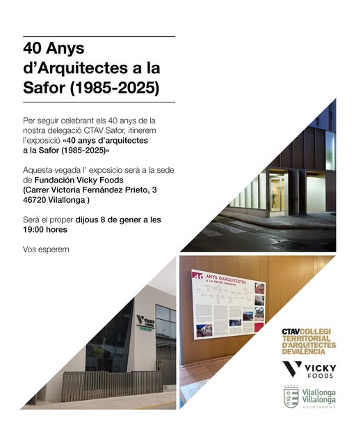 Una muestra que recorre cuatro décadas de evolución arquitectónica en la comarca y conmemora el aniversario de la Delegación Safor del CTAV