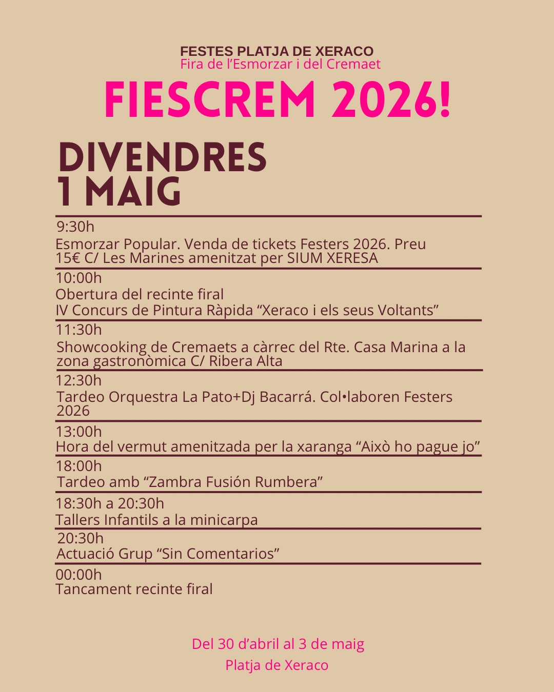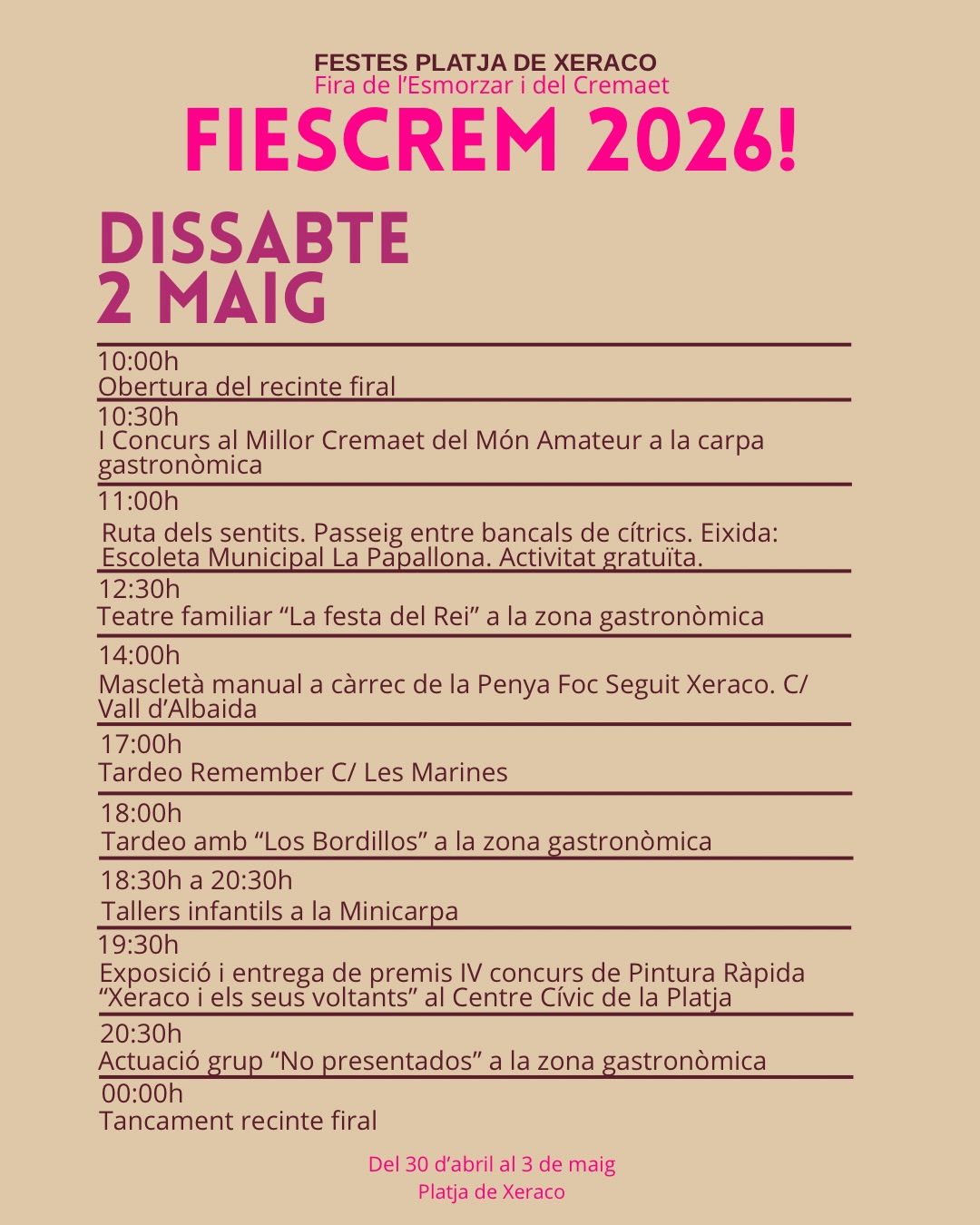 Xeraco se prepara para Fiescrem 2026 con música y gastronomía