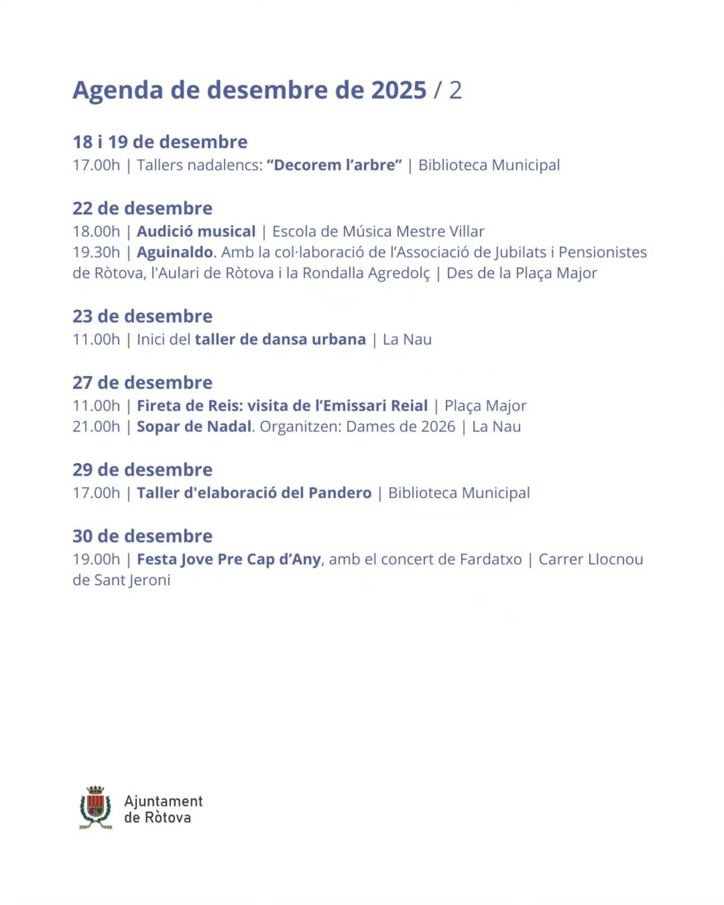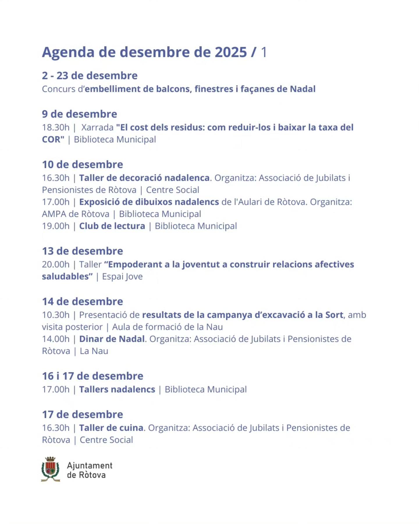 Agenda de Navidad en Ròtova: Diciembre 2025