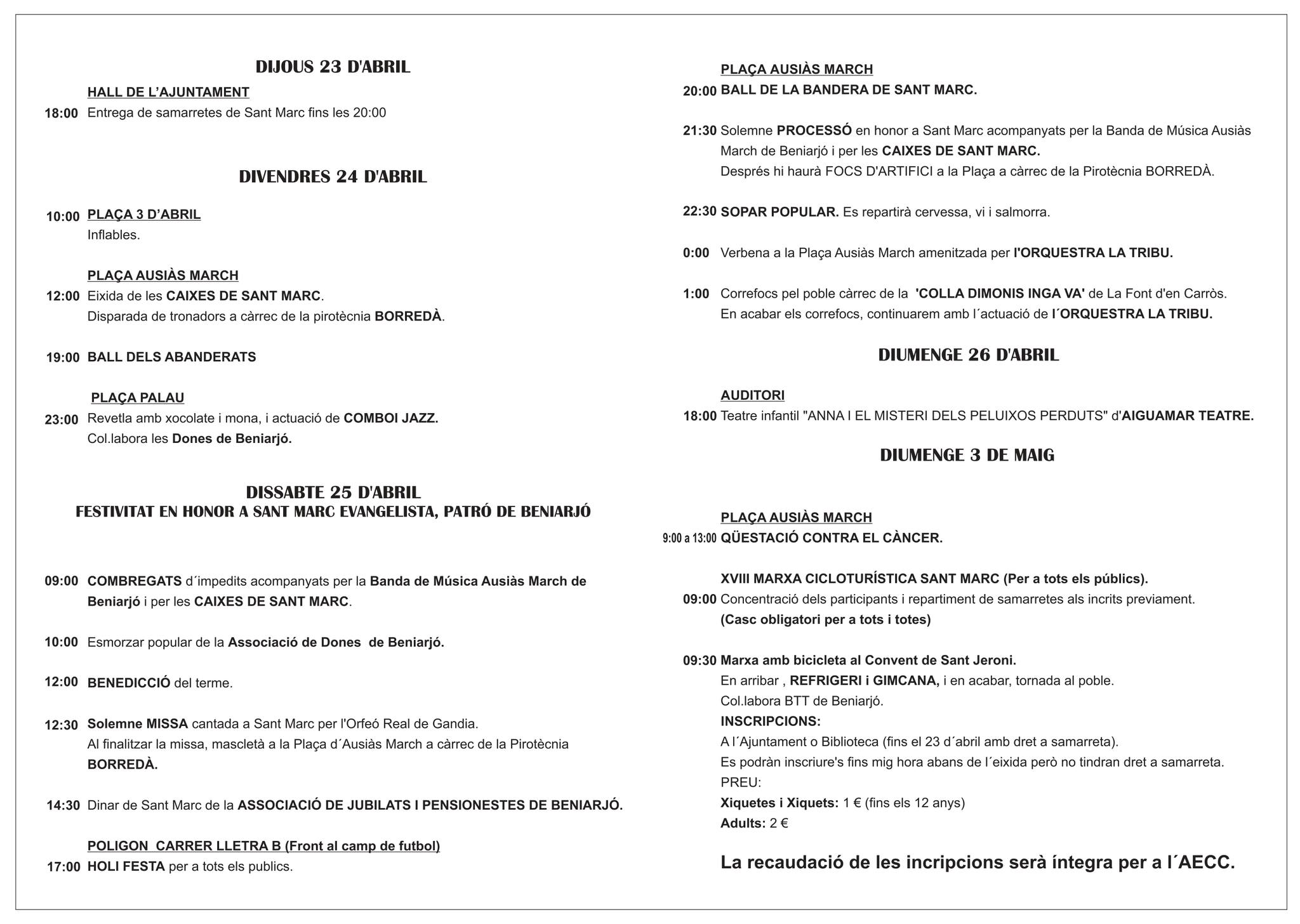 Del 23 de abril al 3 de mayo, el municipio vivirá una programación festiva con música, actividades y actos en honor a su patrón