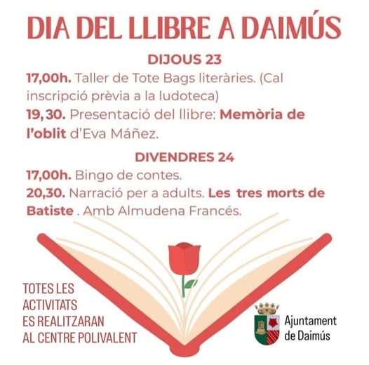 Daimús celebra el Día del Libro con talleres, presentaciones y narración para todas las edades