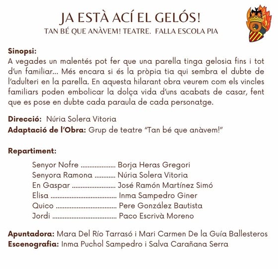 El Show del Teatro Ligorio Ferrer llega este 17 de enero a las 20:30 h con la compañía Tan Bueno Como Vamos! Teatro de la Falla Escola Pia