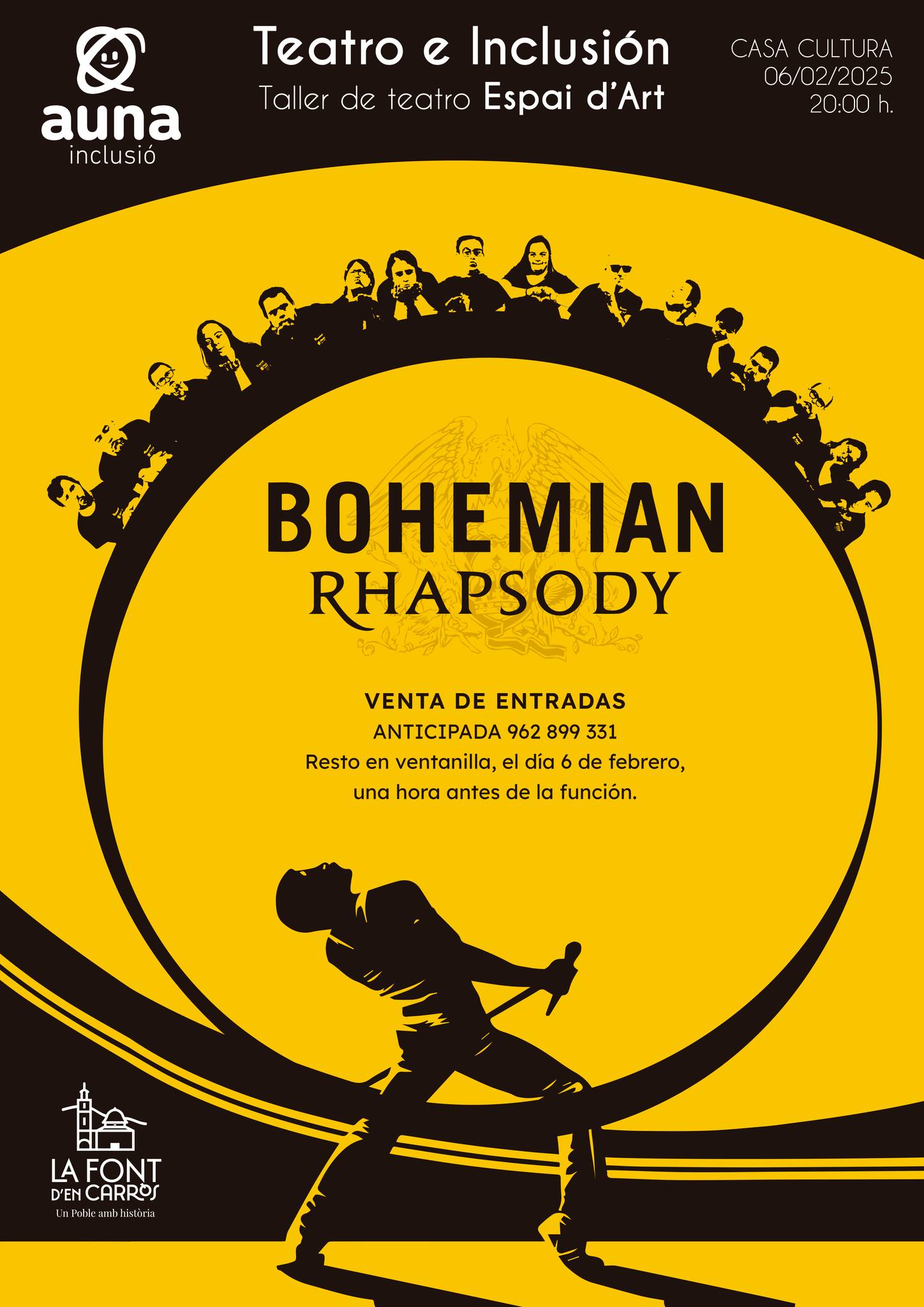 El viernes 6 de febrero a las 20.00 h, una obra sobre Freddie Mercury y Queen con entradas a 3 € y descuento en pizzería para los asistentes
