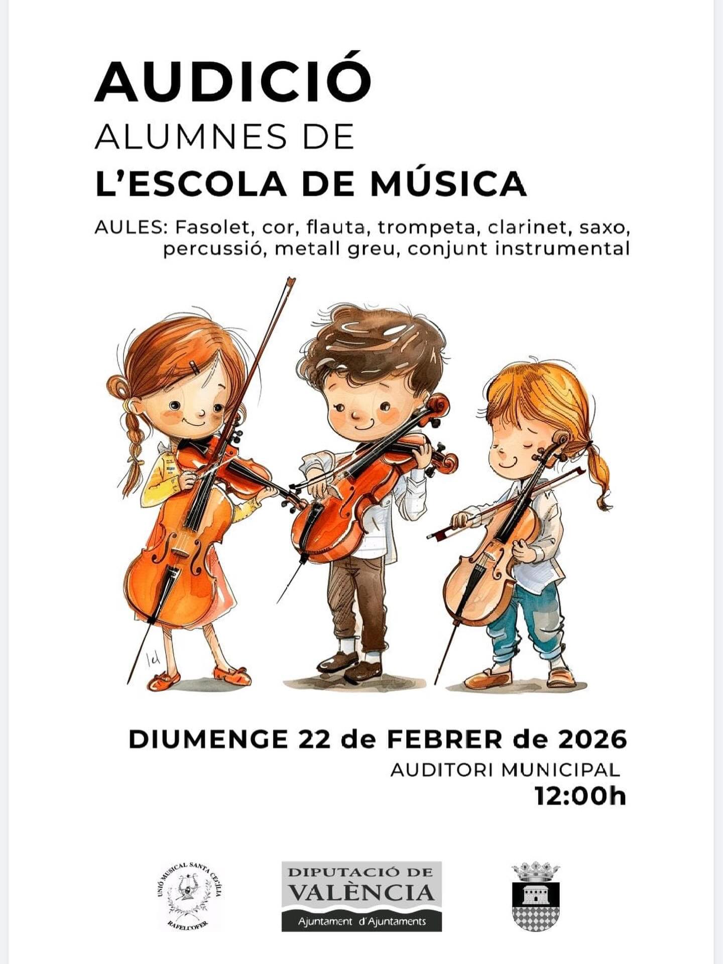 La Unión Musical Santa Cecilia organiza este domingo 22 de febrero a las 12.00 horas una actuación protagonizada por el alumnado de la escuela de música