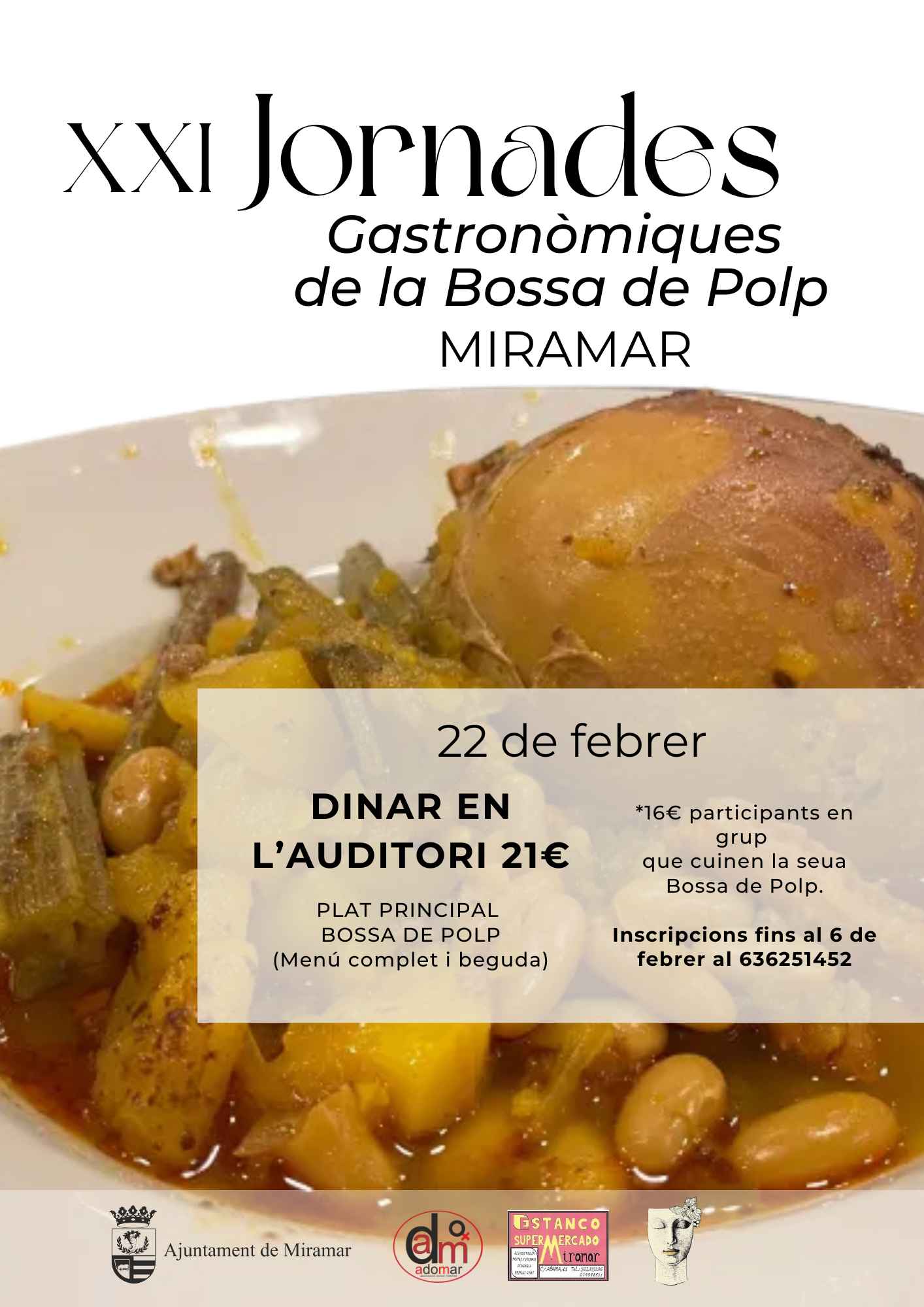 El Ayuntamiento de Miramar ha presentado las XXI Jornadas Gastronómicas de la Bolsa de Pulpo, una de las citas más destacadas del calendario municipal, que tendrá lugar el 22 de febrero al Auditorio de Miramar.