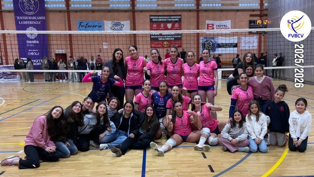 Por su parte, el equipo femenino senior de Primera División brilló en el derbi frente al CV Real de Gandia, imponiéndose con un sólido 3-0. Gracias al dominio en la pista y al apoyo de la grada, las jugadoras aseguran la permanencia en su primer año en la categoría tras el ascenso de la pasada temporada. La victoria refleja la cohesión del grupo, el trabajo de su entrenador y la motivación de todas las jugadoras, incluidas las jóvenes que forman parte de sus entrenadoras.