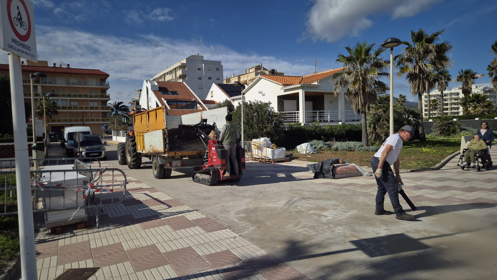 El Ayuntamiento renueva el muro del paseo y coordina la retirada de arena y residuos con la Diputació