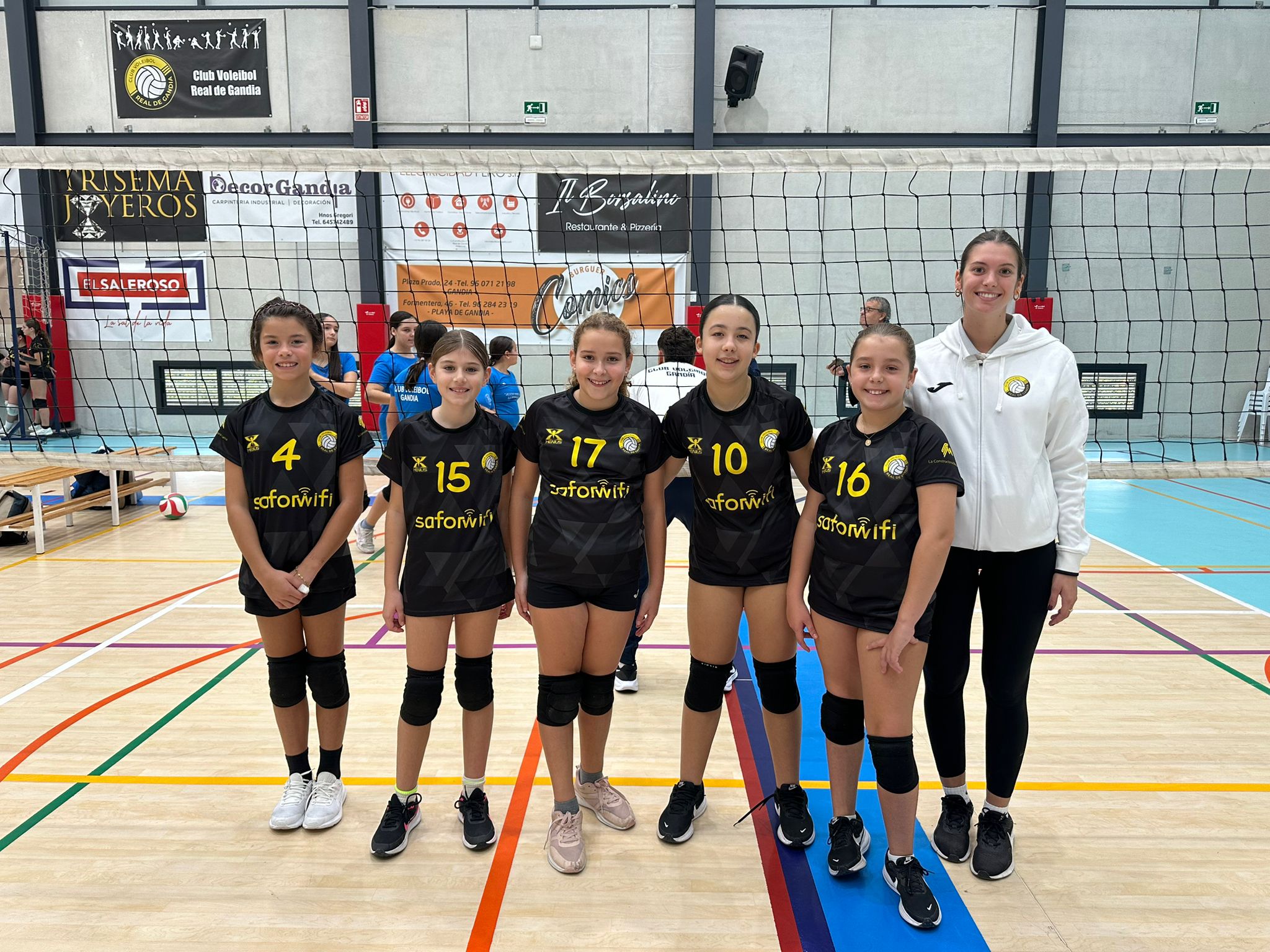 La jornada también trajo buenas noticias en la base. El Saforwifi CVRDG Alevín debutó en la Liga Rendimiento en Xàtiva, logrando tres victorias (2-0 ante Xàtiva Verde, 2-0 frente a VAO Ontinyent y 2-0 contra Xàtiva Rosa) y una ajustada derrota (1-2 ante CV Gandia). Gracias a estos resultados, el conjunto se coloca líder en la clasificación.