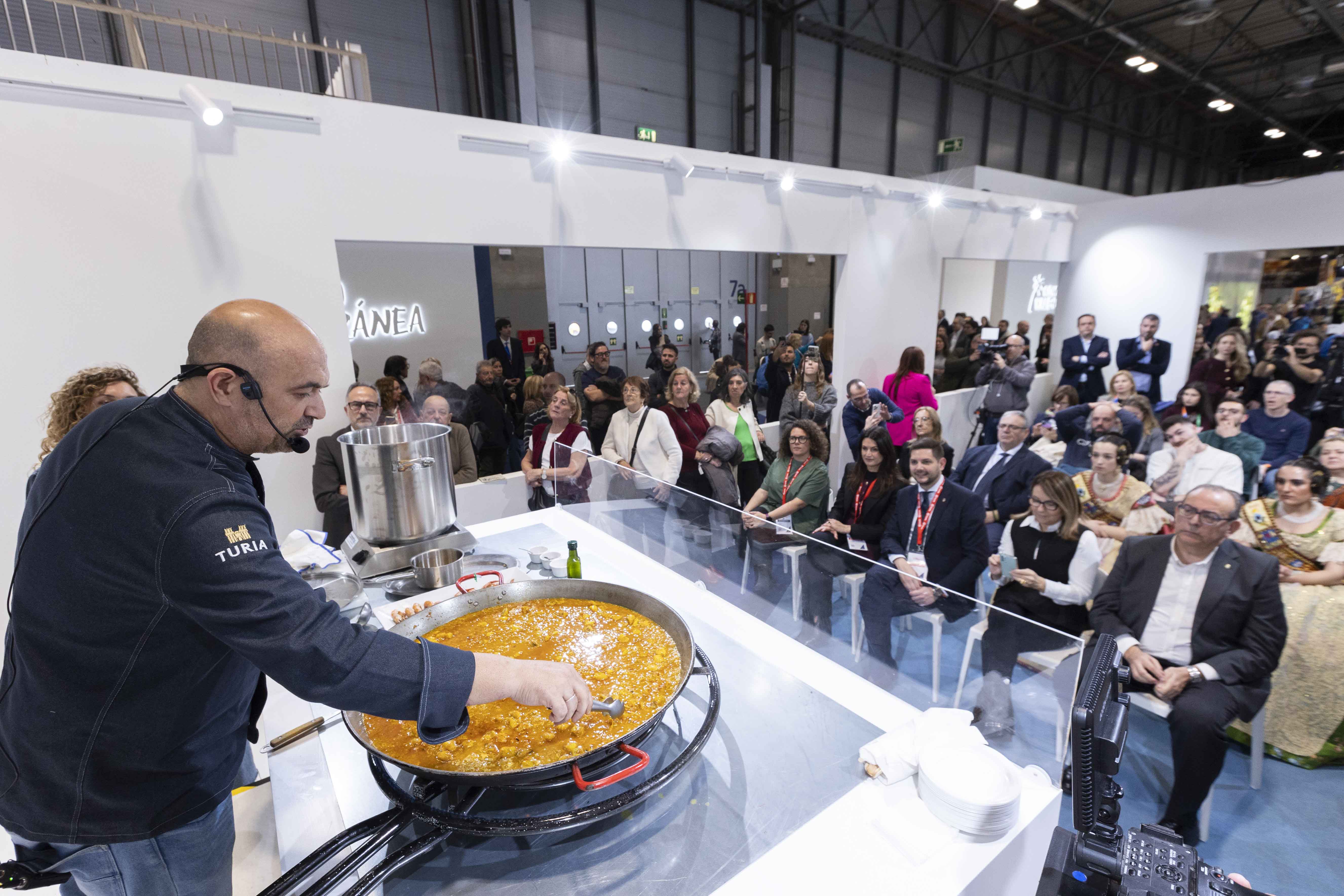 El alcalde de Gandia, José Manuel Prieto, ha presentado hoy en el marco de FITUR el 50º Concurso Internacional de Fideuà de Gandia y Gastronomía, acompañado por Avelino Alfaro, presidente de la Asociación Gastronómica Fideuà de Gandia; Gema Hernández, representante de DestíSafor; y Toni Durà, autor del cartel conmemorativo de esta edición.