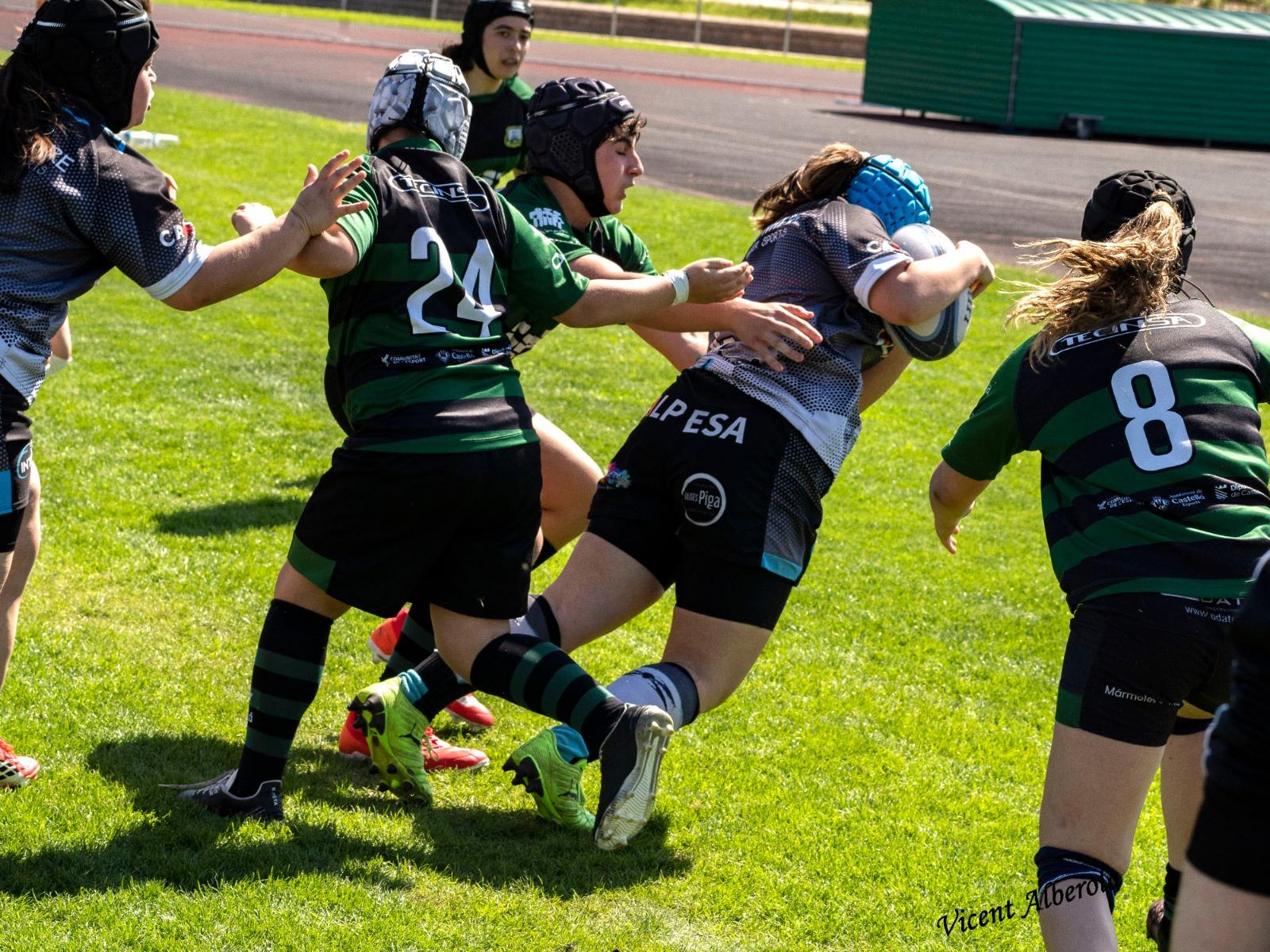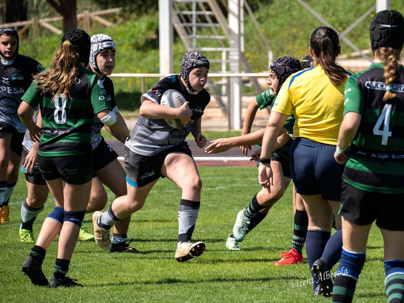 Por su parte, el equipo M14, entrenado por Gonzalo Nicolás López, firmó una espectacular victoria por 102-12 frente al CR Castellón. El conjunto continúa mostrando una clara progresión y confianza de cara a los próximos Play Off. El dominio fue prácticamente total, con una destacada actuación de Adam Belhadri, autor de múltiples ensayos, bien secundado por sus compañeros en un juego colectivo muy sólido. Tras un 48-5 al descanso, el equipo mantuvo su ritmo en la segunda mitad, ampliando la diferencia con un juego ofensivo imparable. El CR Castellón, pese al resultado, compitió con intensidad en todo momento.