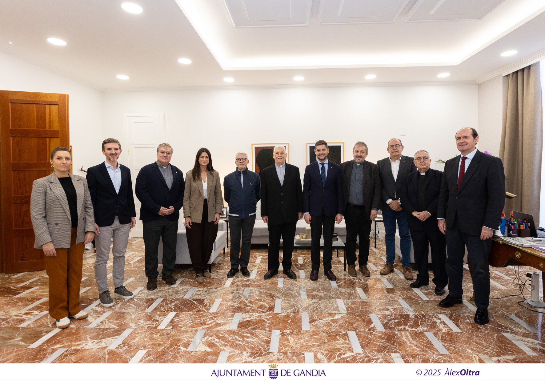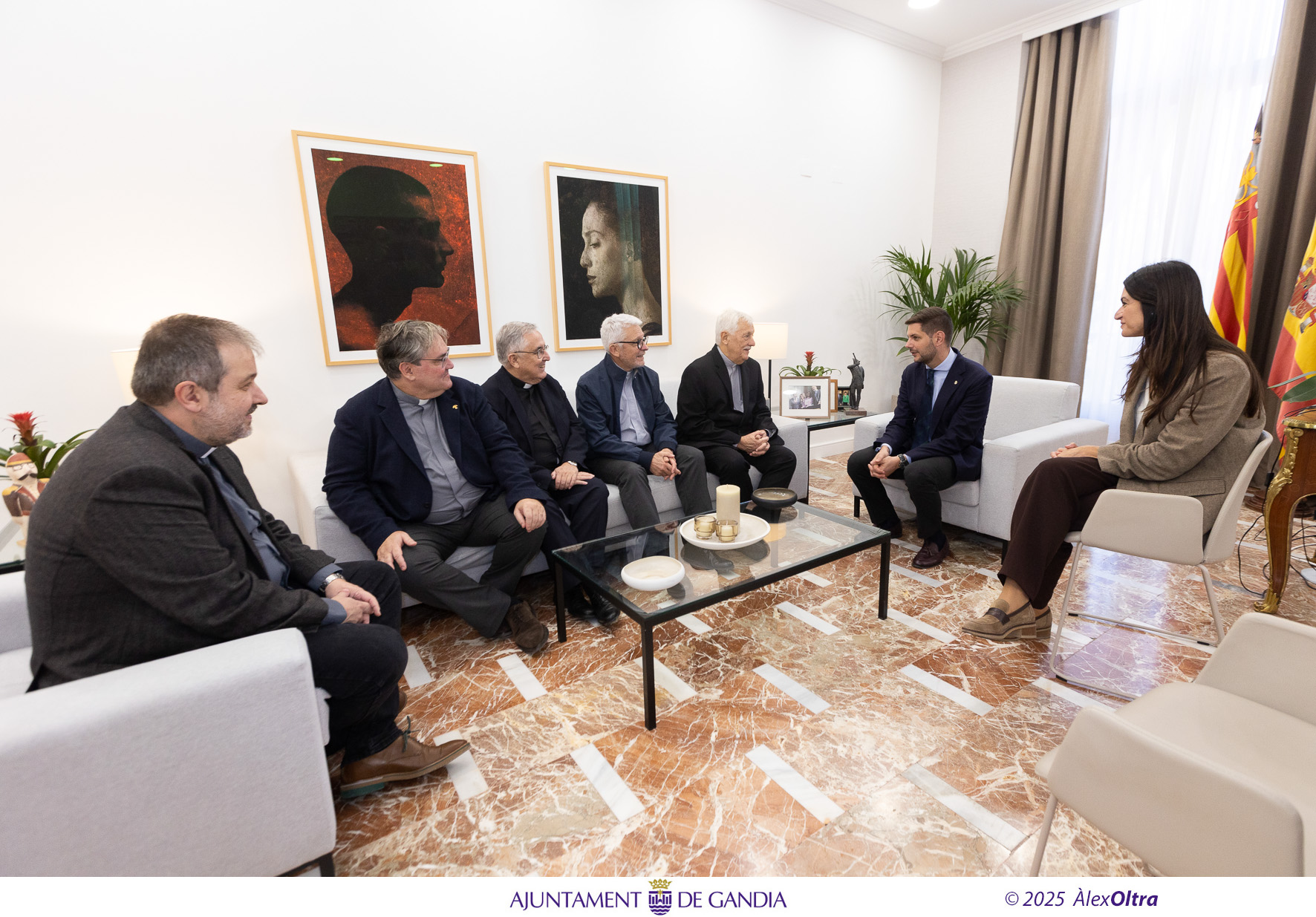A su llegada al consistorio, Sosa Abascal ha sido recibido por el alcalde de Gandia, José Manuel Prieto Part, junto con la tenienta de alcalde de Cultura y exdirectora del Palacio Ducal, Balbina Sendra Alcina; y los portavoces de los grupos municipales PSOE, Miguel Ángel Picornell Canut; de Acord per Guanyar-Més Gandia, Esther Sapena Peiró; del PP, Víctor Soler Beneyto; y de VOX, Manolo Frasquet Millet.