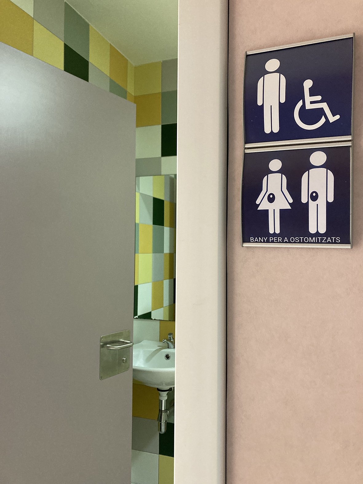 Uno de los aseos está ubicado en la zona de endoscopias del hospital, donde estos pacientes acuden a consultas, y el otro en la segunda planta de consultas externas. Ambos están señalizados con cartelería específica para que sean fácilmente identificables.