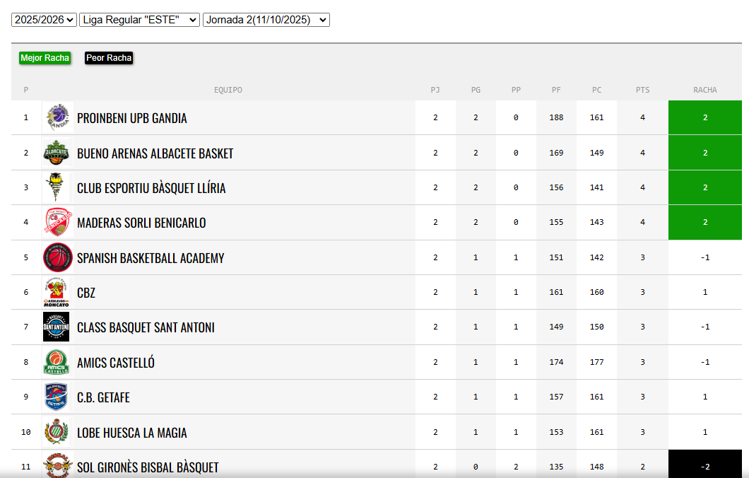 La victoria sitúa por primera vez al UPB en lo más alto de Segunda FEB, antigua LEB Plata. La efeméride cobra aún más relevancia si se tiene en cuenta que hacía 20 años que un club de Gandia no lideraba esta categoría. La última vez fue en la temporada 2005-2006, cuando el Aigües de València Gandia Bàsquet terminó ascendiendo a LEB Oro.