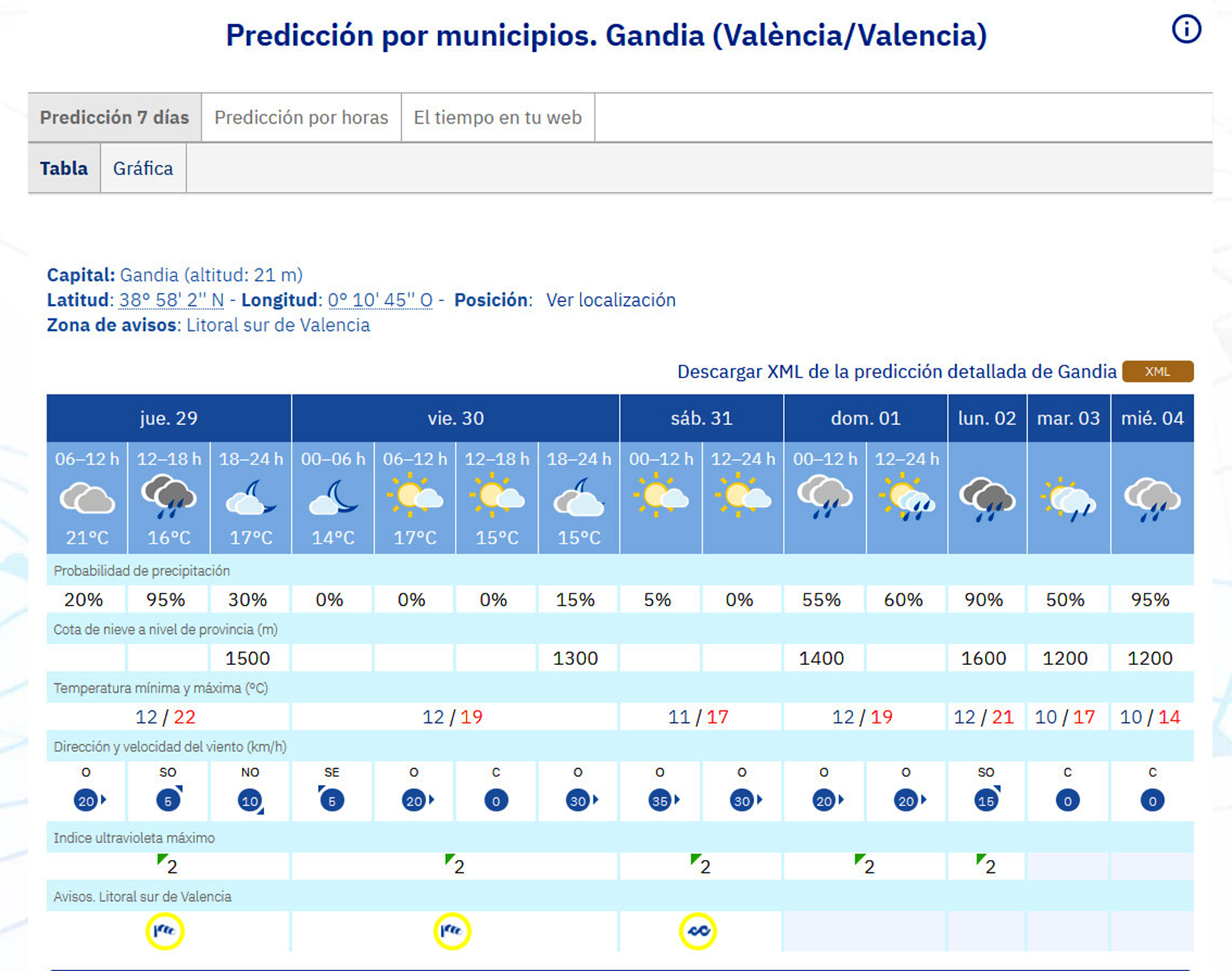Así las cosas, para este vigésimo noveno día del año 2026 y onomástica del Beato Bronislaw Markiewicz y de San Pedro Nolasco, la Agencia Estatal de Meteorología (Aemet) ha previsto que, en la Safor, hoy tengamos cielo nuboso, disminuyendo a intervalos nubosos al final del día.