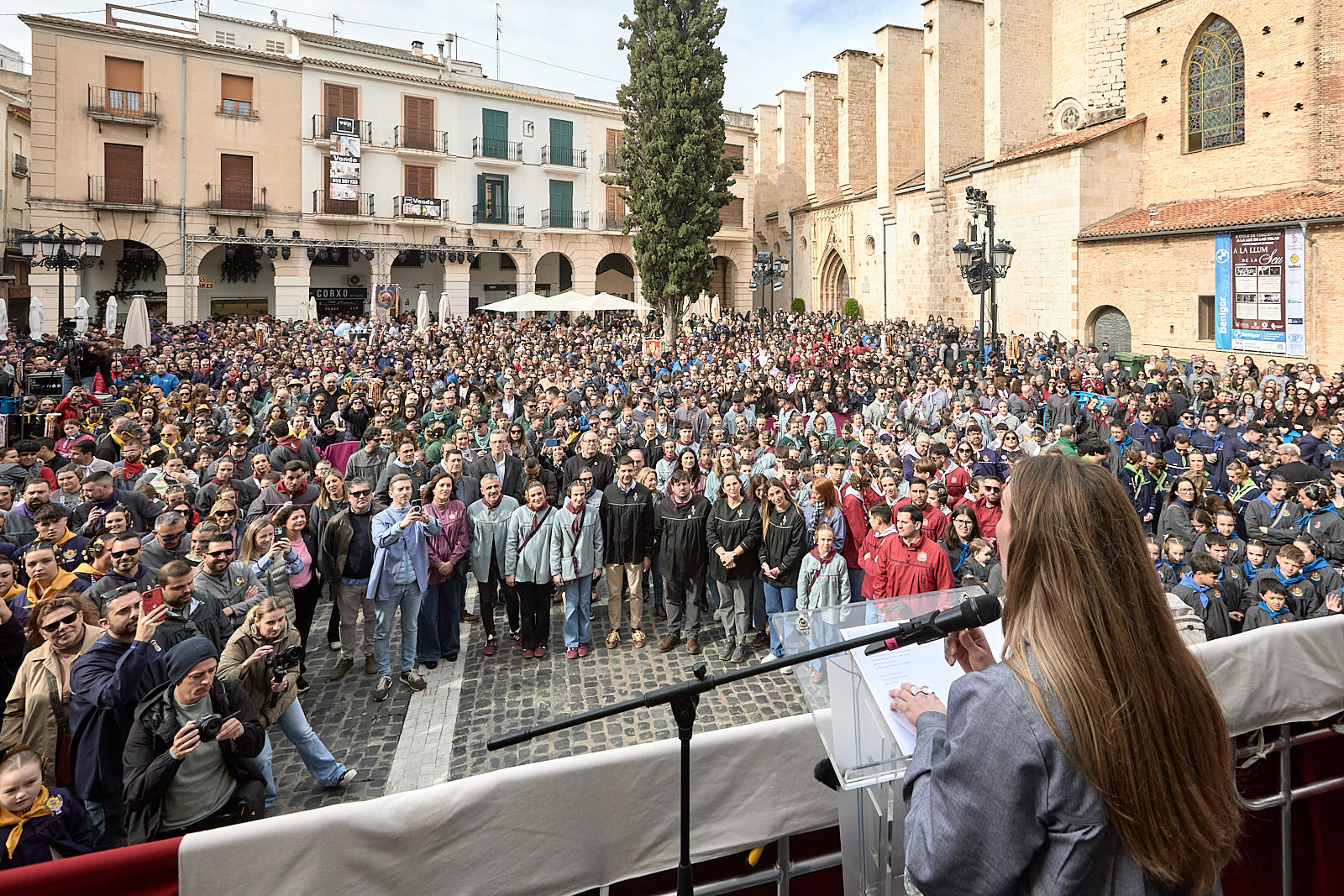 La Fallera Mayor Infantil, Triana Benavent Chover, anunció con emoción que ''ya estamos en Fallas'' señalando que “las calles se iluminan, la música despierta en los barrios y la pólvora nos recuerda que la fiesta comienza. Los niños y niñas somos los que miramos las Fallas con ojos llenos de magia”, afirmó la FMI, que concluyó su discurso con un mensaje cargado de sentimiento: “Abrid las puertas de vuestros corazones, abrid los ojos y levantad el ánimo, porque las Fallas ya están aquí”.