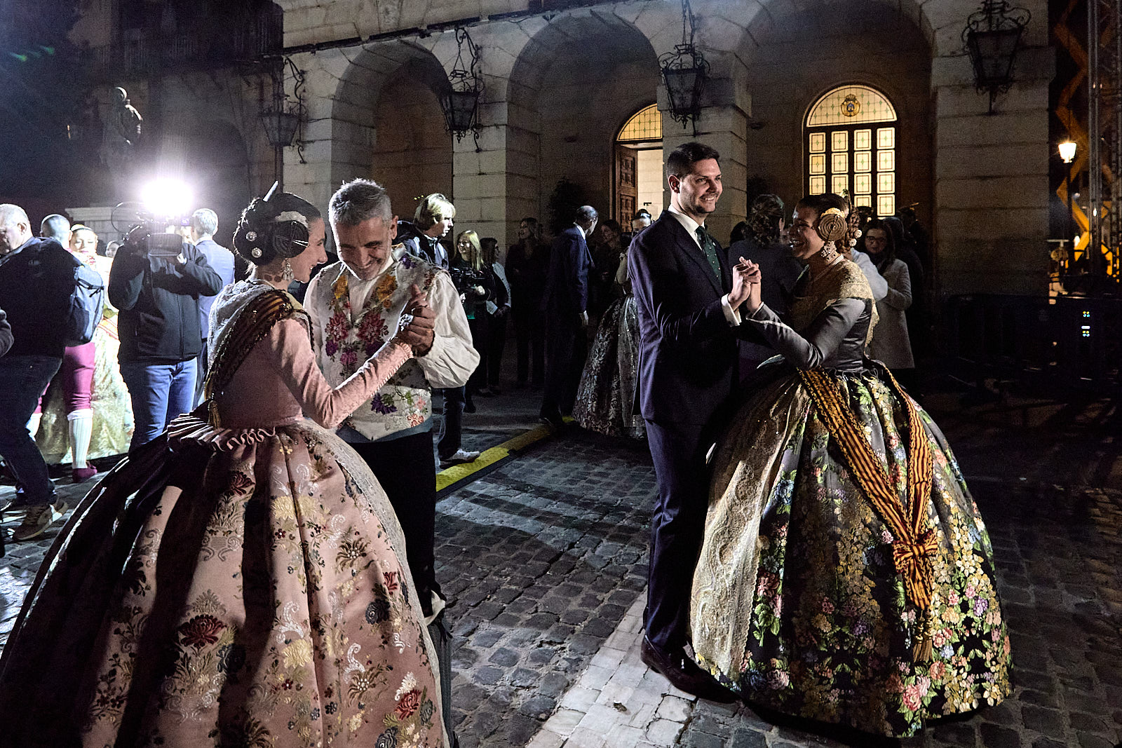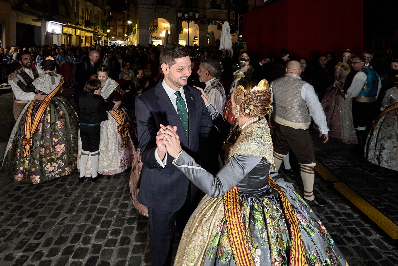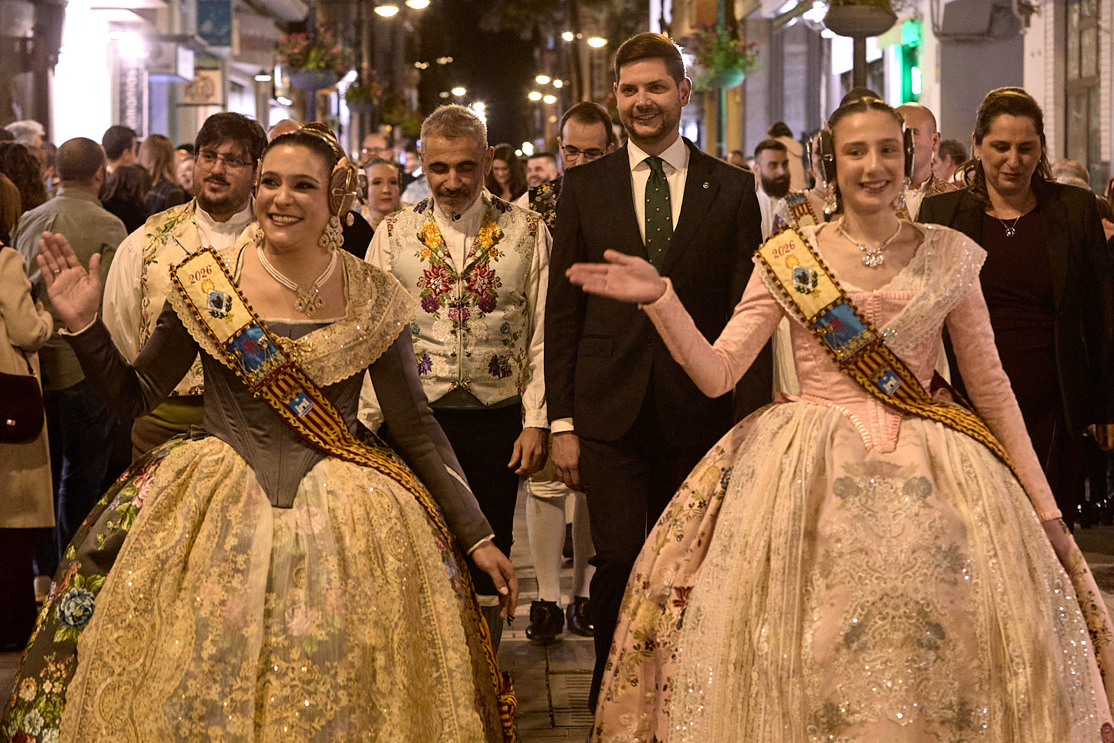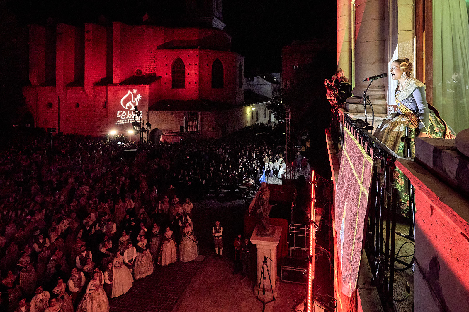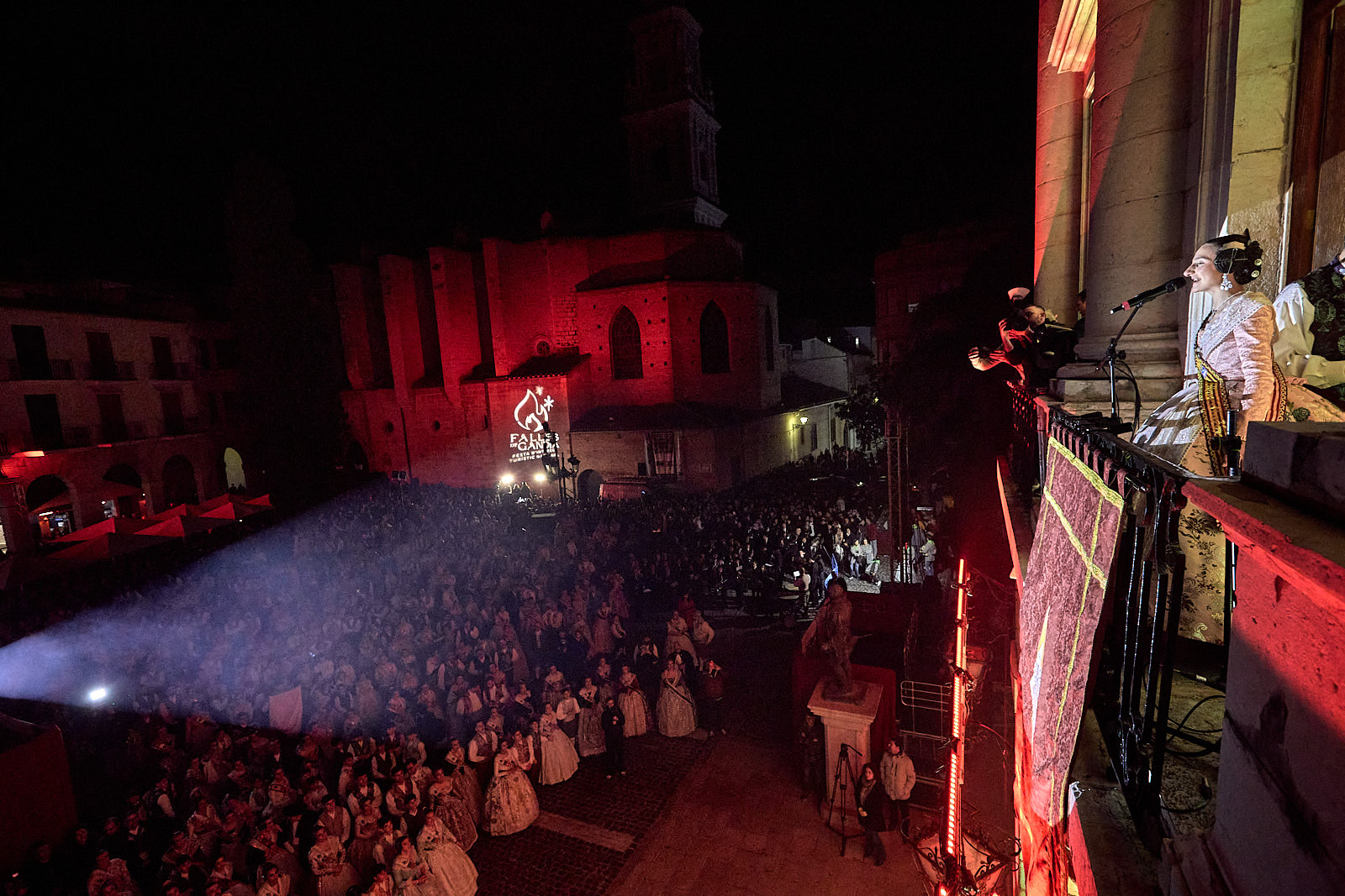 Ya por la tarde-noche arrancaba el pasacalle más formal con la participación de las 23 comisiones falleras, las cortes de honor y las Falleras Mayores de Gandia así como autoridades. Era la noche de Triana y de Manuela, en la que se debían dirigir desde el balcón principal del Ayuntamiento de Gandia a toda la ciudadanía. Y lo hicieron. Con un público fallero entregado y llenando de nuevo la plaza Major.