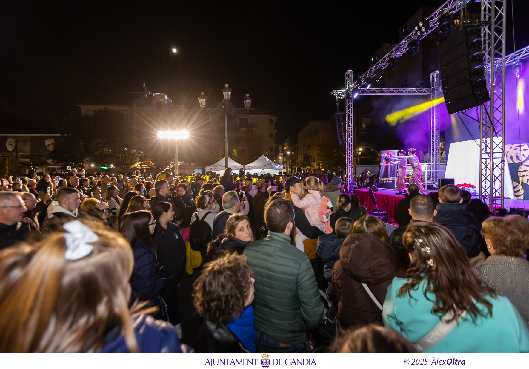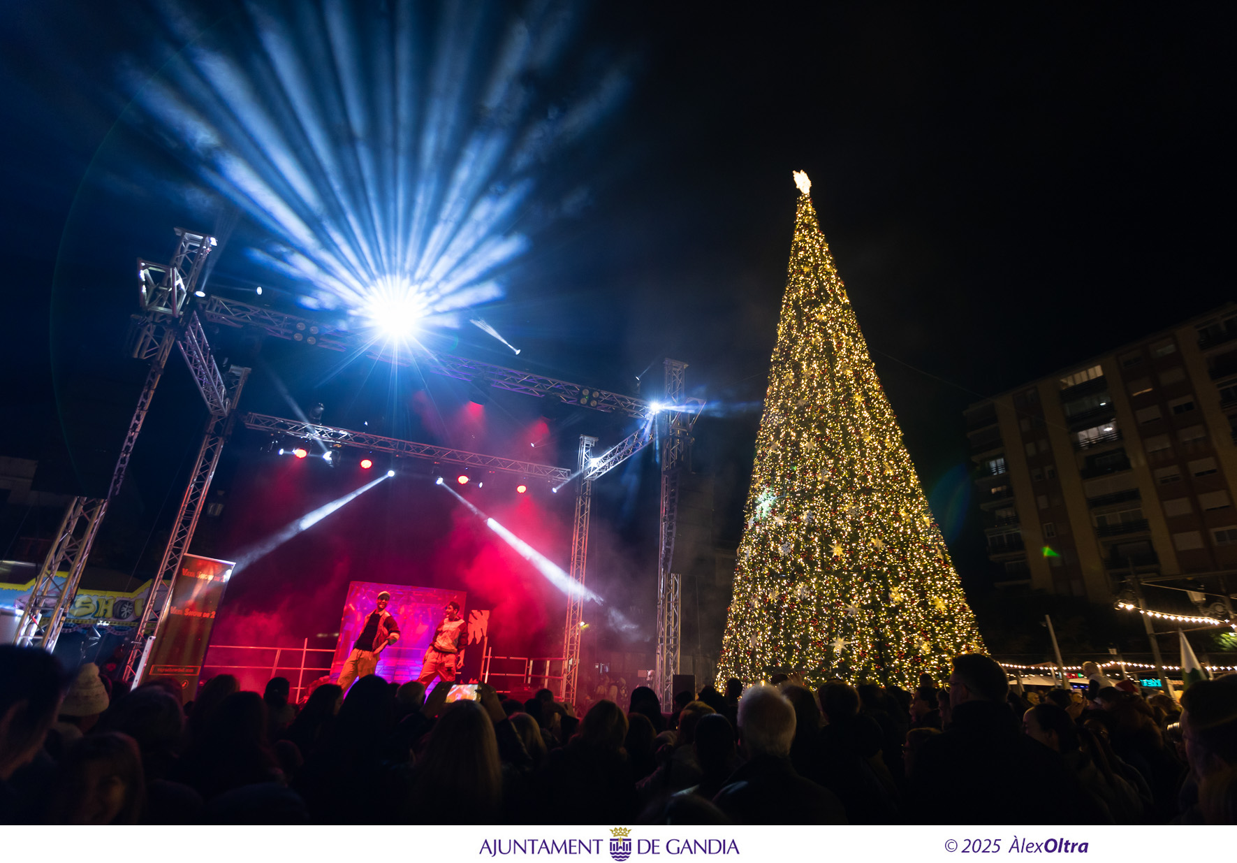 Gandia enciende la iluminación navideña con un espectáculo multitudinario en la plaza de Prado