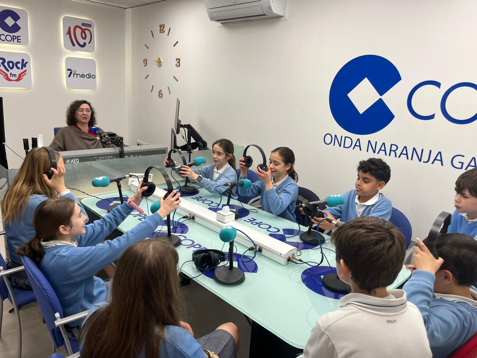 El pasado curso empezaron a acercarse al mundo de la radio haciendo un podcast y en este curso han querido acercarse a los estudios de COPE Onda Naranja para ver in situ cómo son los estudios, cómo se trabaja en la radio y poder estar en los estudios.